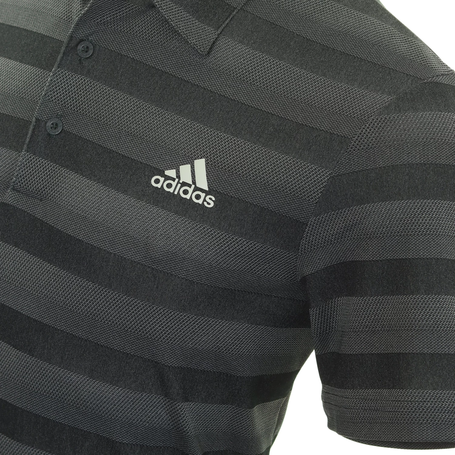 Mens adidas Golf 2-Colour Stripe Shirt. A lightweight, breathable, technical golf shirt constructed in a soft touch fabric with 3 button placket.