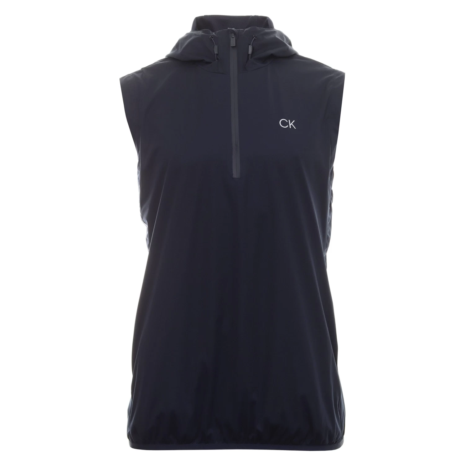 Mens Calvin Klein Golf Pebble Windbreaker Gilet. An windbreaker gilet to keep you dry and your game on track when the weather takes a turn. This gilet has durable water repellent properties with an attached hood and waterproof zips.