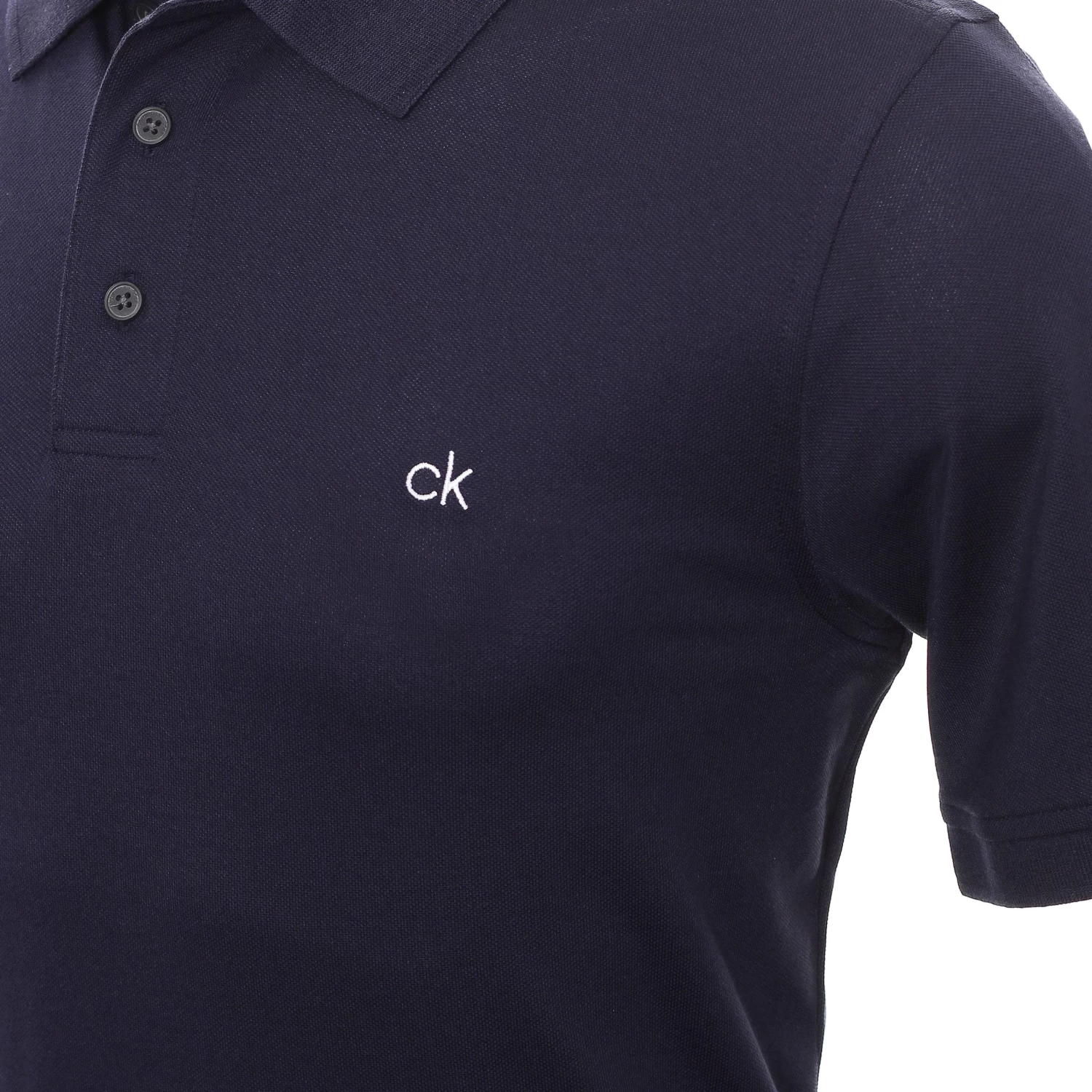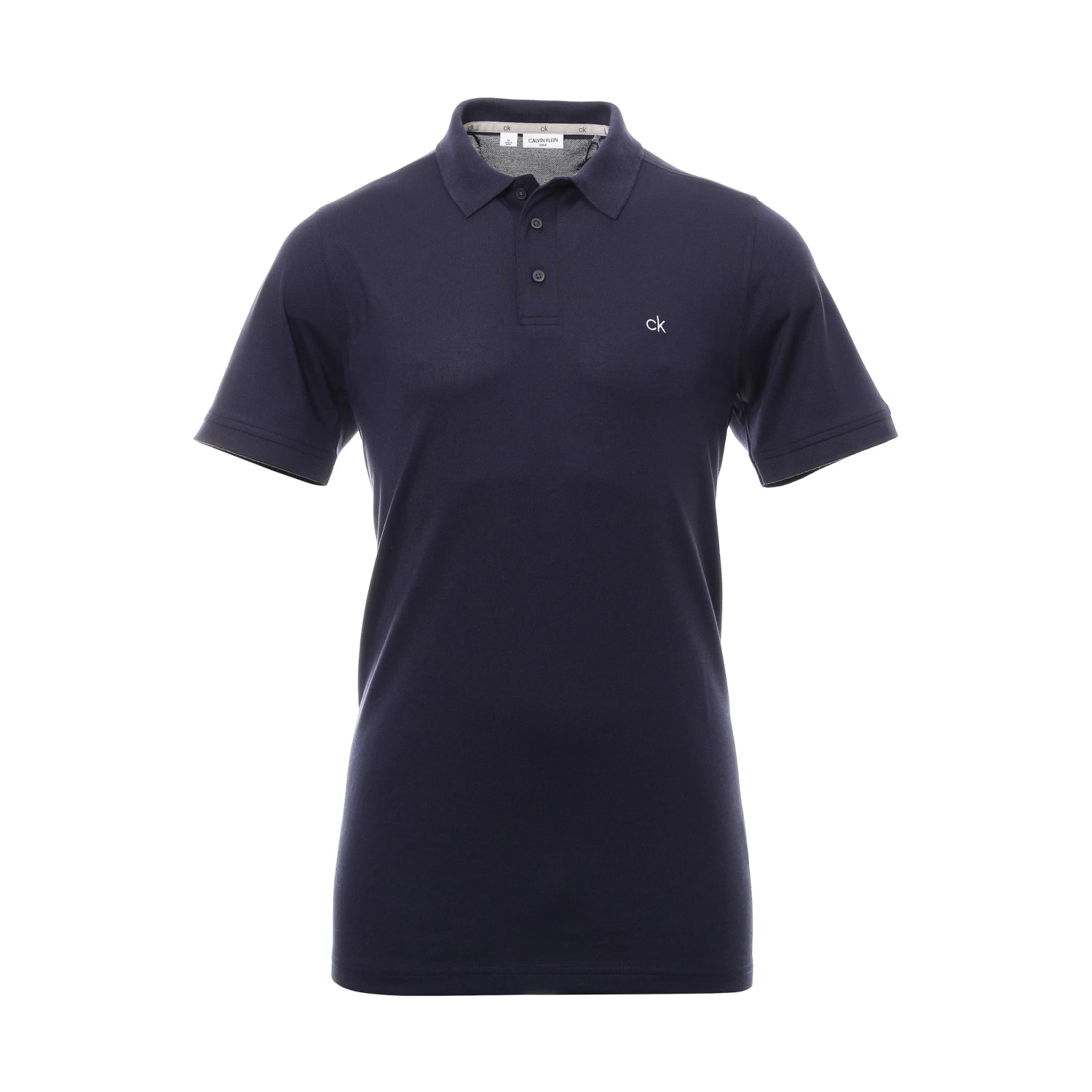 Mens Calvin Klein Planet Golf Polo Shirt. A classic, 3-button placket, golf polo shirt in a cotton blend fabric with rib knit collar and cuffs. From the Planet series of sustainable and performance products crafted from an eco-friendly blend of organic cotton and recycled polyester.