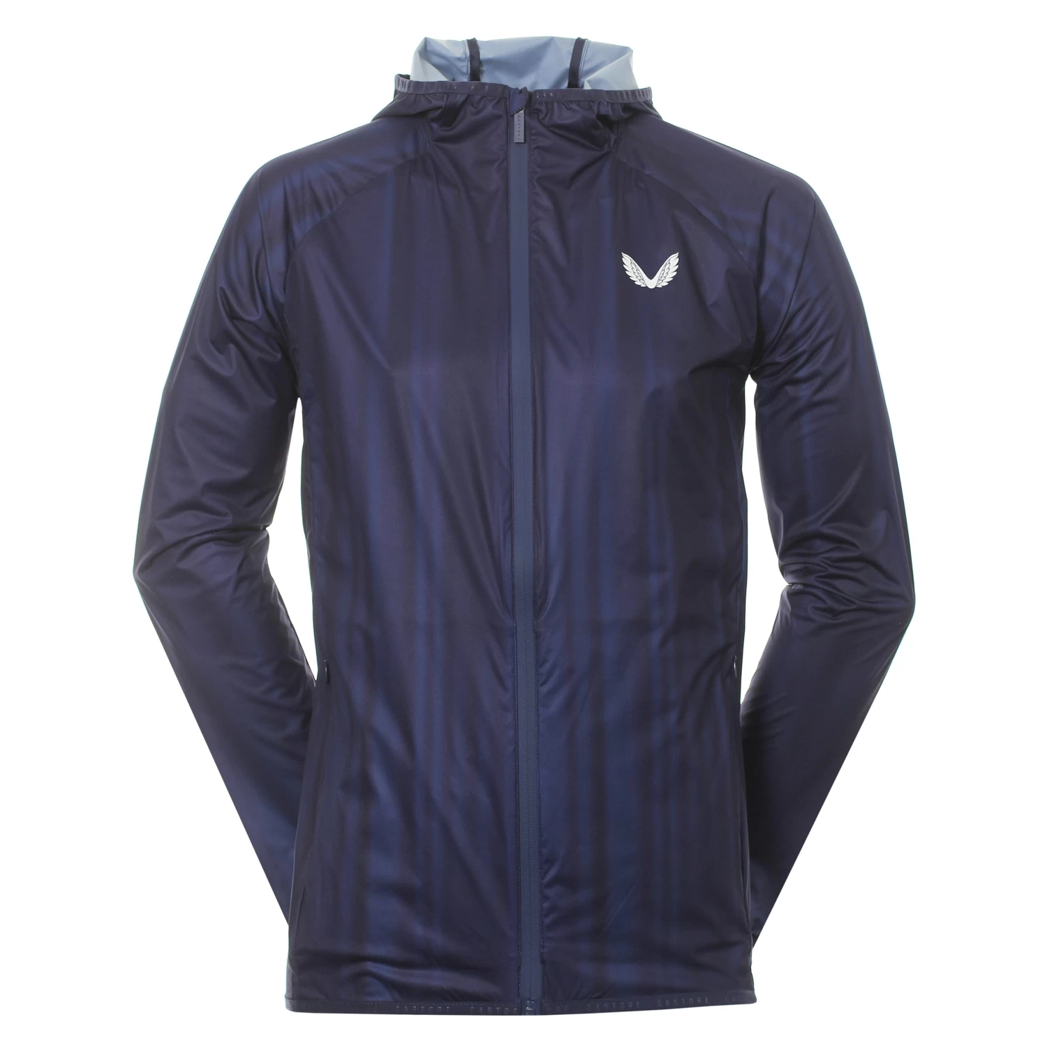 Mens Castore Active Cirrus Flyweight Running Jacket. A technical, flyweight, hooded running jacket constructed from a high stretch, water resistant fabric which offers moisture wicking properties and a great breathability.