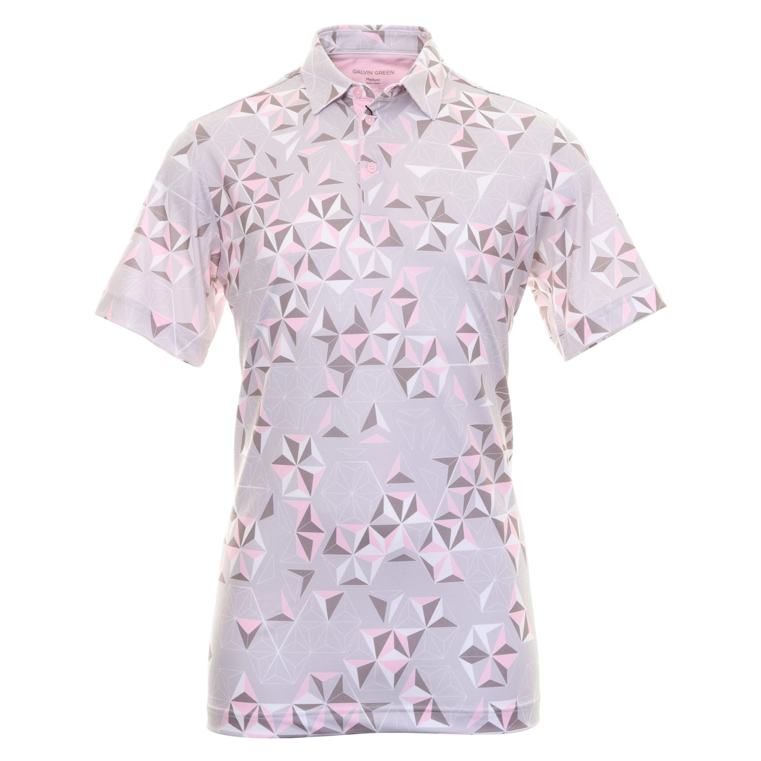 Mens Galvin Green Makai Ventil8+ Golf Shirt. Part of the Think Pink collection, a short sleeve golf shirt, fabricated from VENTIL8+ creating a very light, soft and comfortable garment. It’s unparalleled breathability and moisture transportation properties will keep you cool and dry.