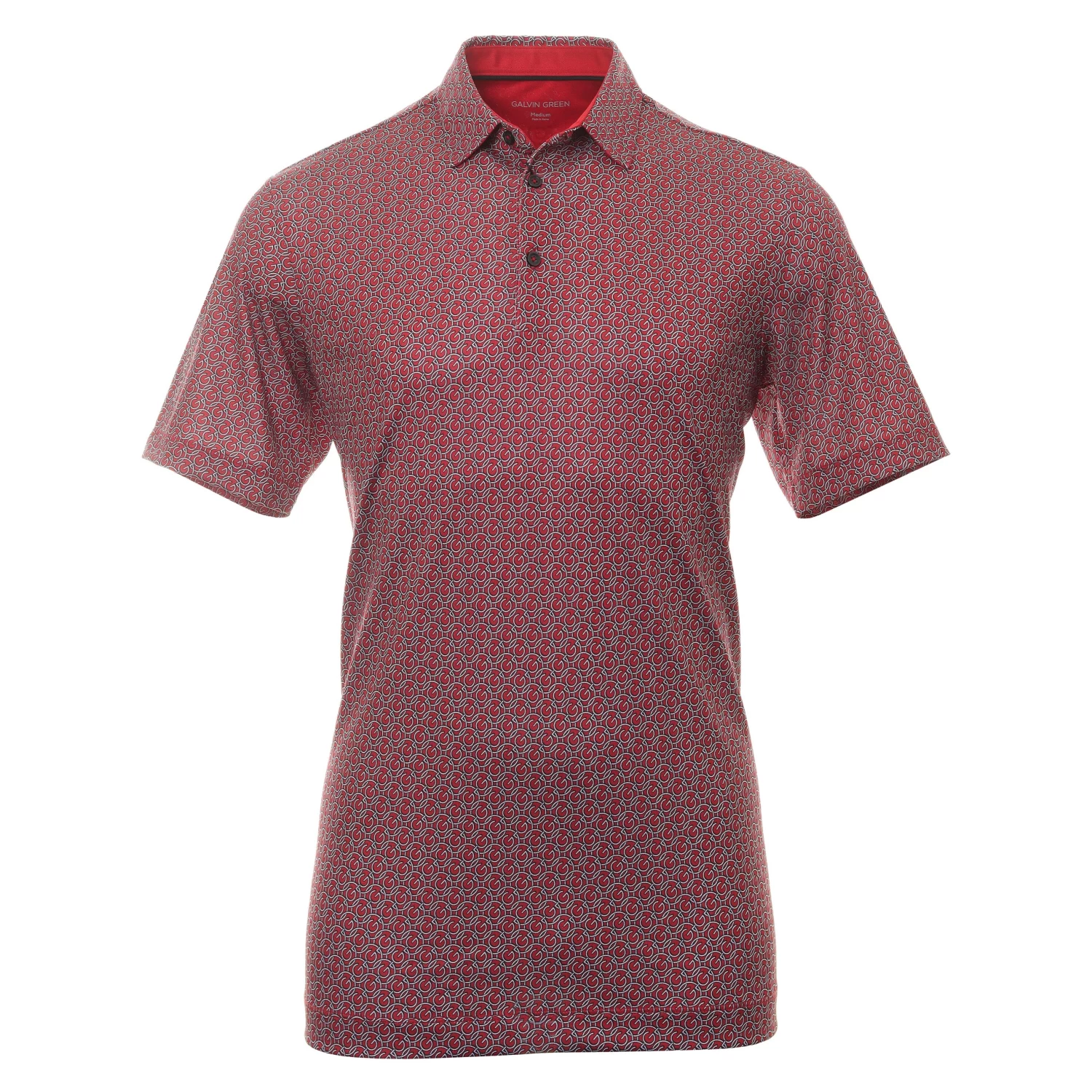 Mens Galvin Green Mauro Ventil8+ Golf Shirt. New for SS23, a short sleeve golf shirt, fabricated from VENTIL8+ creating a very light, soft and comfortable garment. It’s unparalleled breathability and moisture transportation properties will keep you cool and dry.