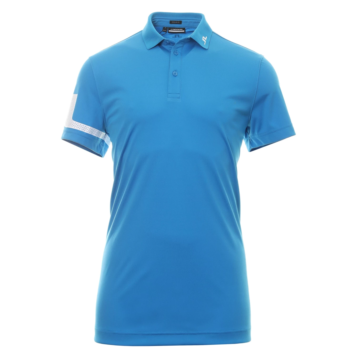 Mens J.Lindeberg Golf Heath Polo Shirt. Updated for Spring Summer 2023, an iconic, three button placket, polo shirt constructed from a fast dry, moisture wicking, TX jersey fabric with 4 way stretch for high comfort.