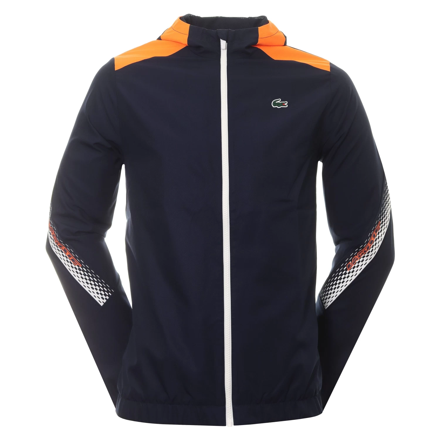 Mens Lacoste Sport Hooded Jacket. Striking design. Technical, practical, made to wear on the course. Focus on your performance, Lacoste will handle the rest.