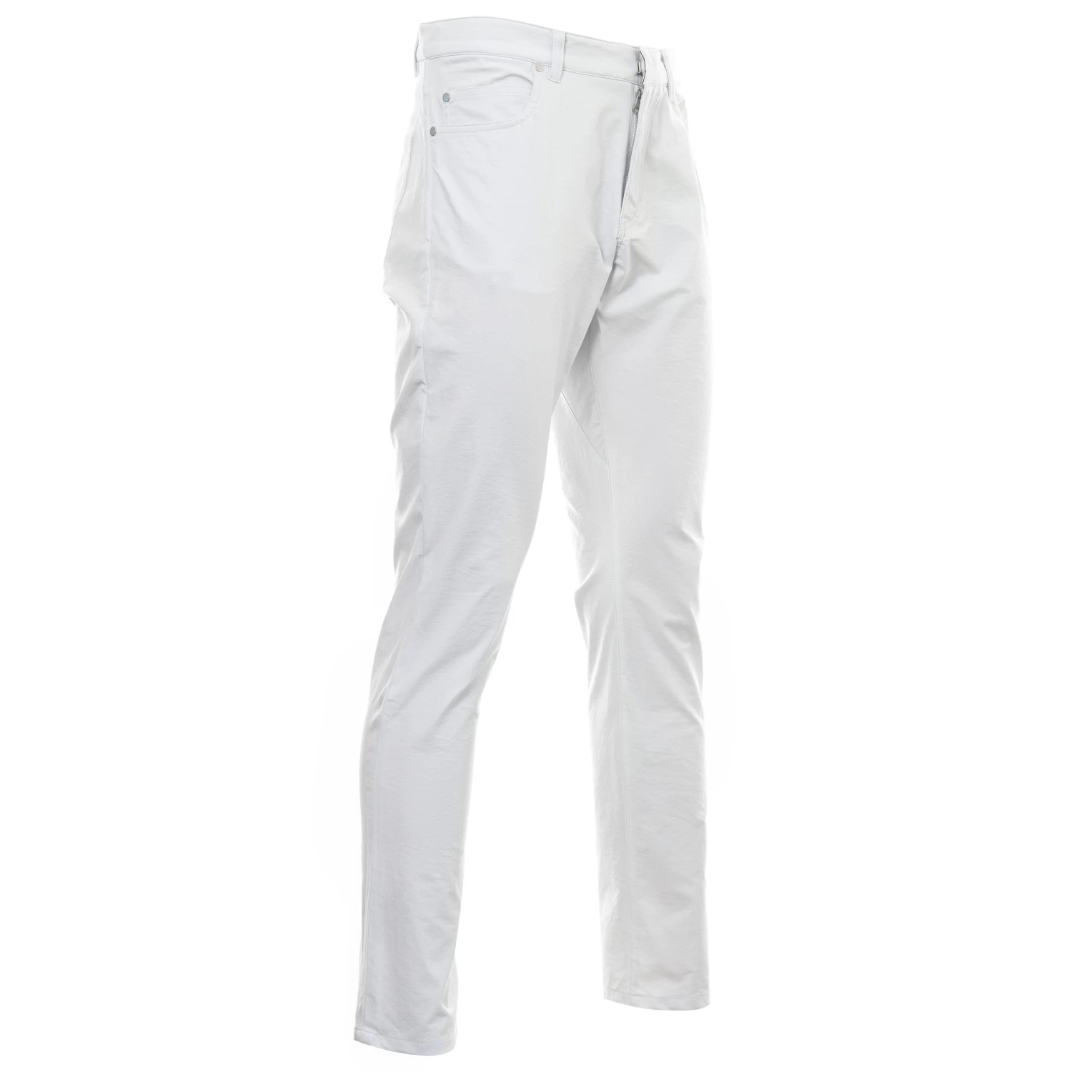 Mens Nike Golf Dri-Fit Repel 5 Pocket Pant. A slimmer fitting golf trouser, denim inspired design. Dri-Fit technology moves sweat away from your skin for quicker evaporation, helping you stay dry and comfortable on the course. The stretchy woven fabric has a water repellant finish to help keep you dry in wet weather.