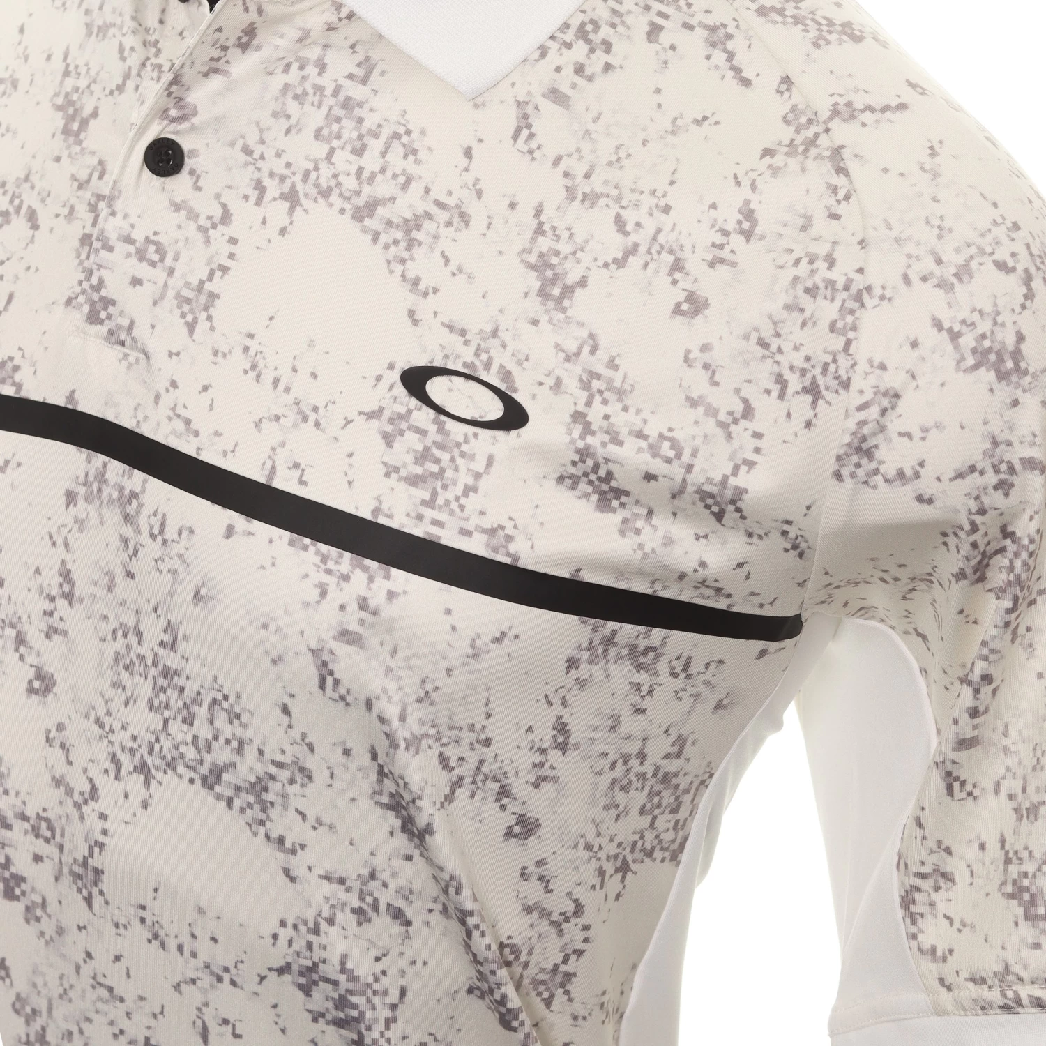 Mens Oakley Golf Sand Camo Raglan Shirt. A two button placket golf shirt with 4-way stretch for increased freedom of movement. Constructed with Hydrolix technology fabric which provides supreme moisture management.