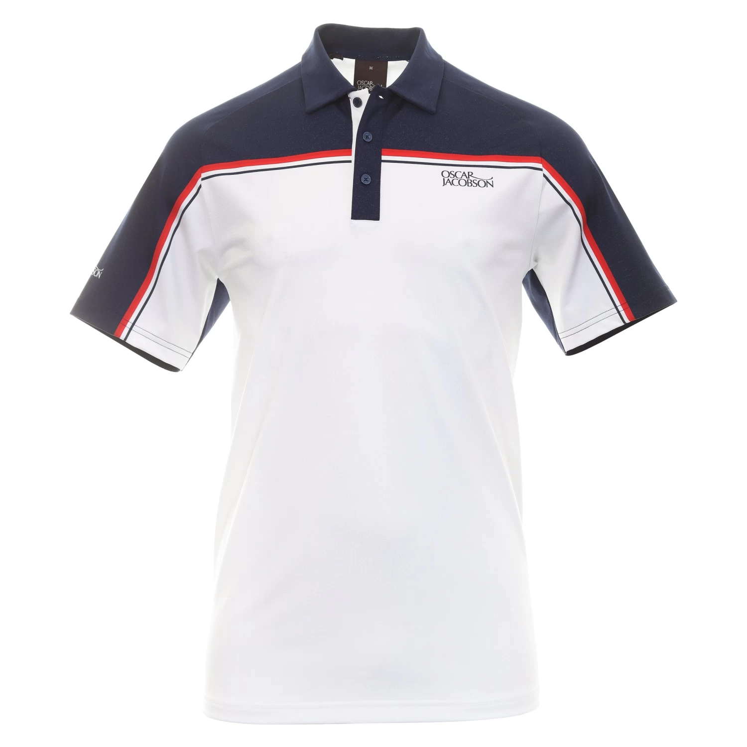 Mens Oscar Jacobson Gilman Golf Polo Shirt. A beautifully crafted polo fabricated from a lightweight, polyester fabric with four way stretch for ultimate comfort and playability. Offers a high level of moisture management through wicking and keeps you fresh through an anti-bacterial agent.