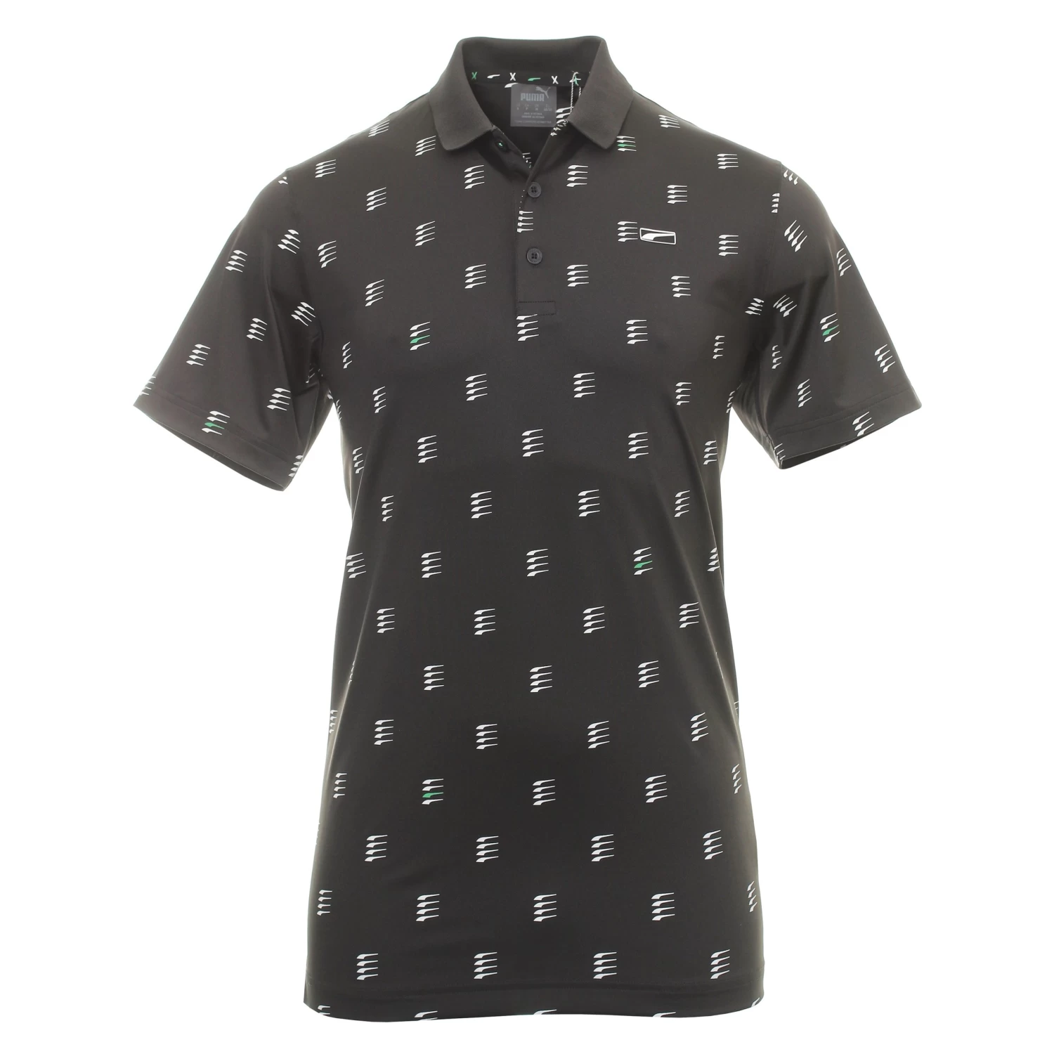Mens Puma Golf MATTR Moving Day Polo Shirt. Released to celebrate the 2021 Masters the event held at Augusta National, Georgia. A technical golf shirt, finished with three button placket and rib knit collar. MATTR represents Materials, Technology, and Research, and is designed to provide the highest level of on-course comfort in all climate environments.