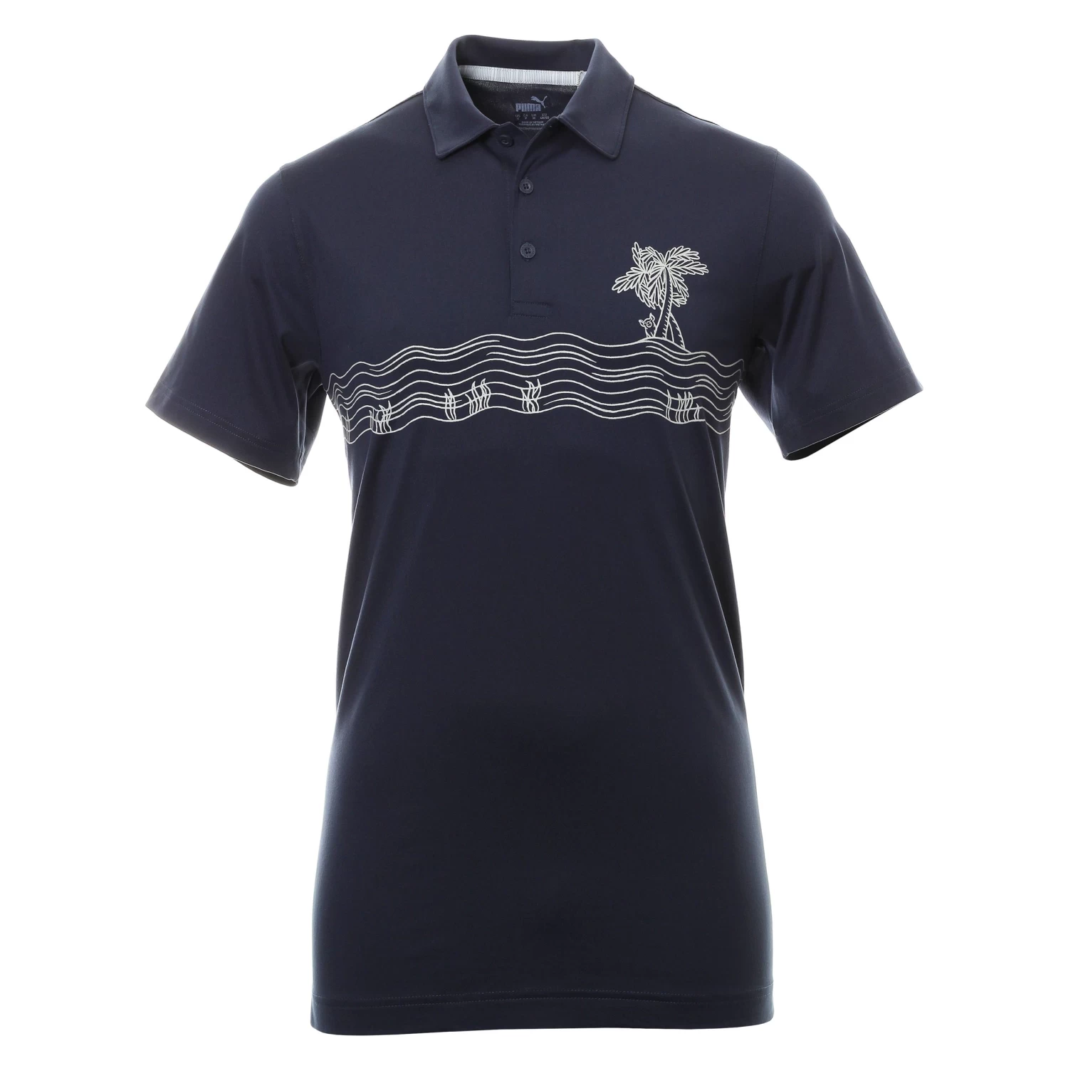 Mens Puma Golf Oasis Polo Shirt. Released for the 2022 Hero World Challenge, a technical golf shirt, finished with three button placket and self fabric collar.