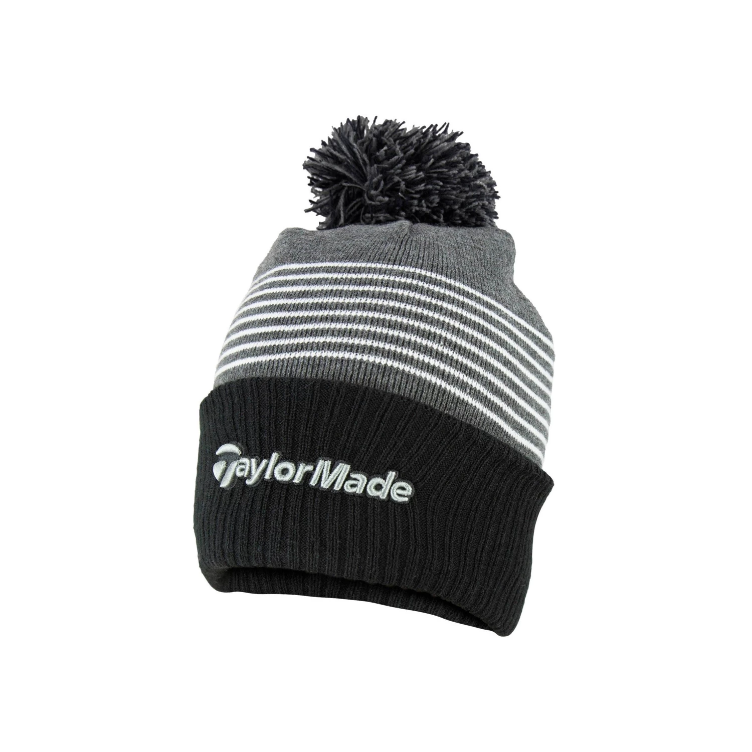 TaylorMade Golf Bobble Beanie Hat. A Knitted cold weather bobble beanie finished with TaylorMade embroidered logo. 100% acrylic – One size
